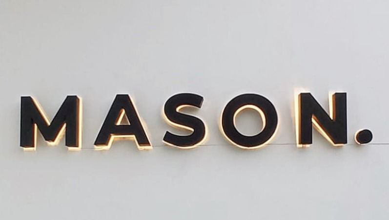 Rustic finishes hold up well in Bali's environment and tend to read as premium rather than cheap. Warm white LED backlighting behind a rustic-finish dimensional letter is one of the most effective combinations we've seen across the portfolio — visible day and night, durable, looks right in both jungle and clifftop settings.