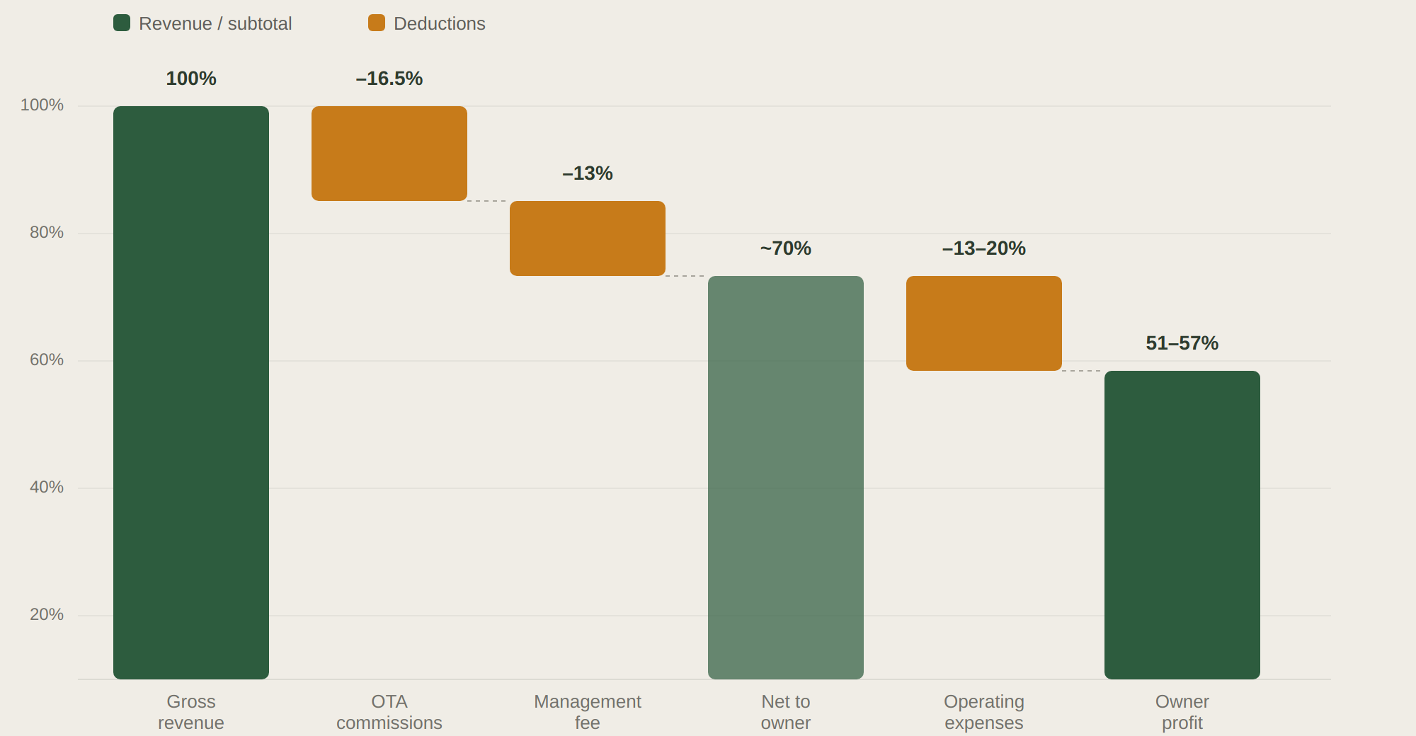 Here’s what happens to every dollar a guest pays — from the gross booking amount down to what the owner actually receives.