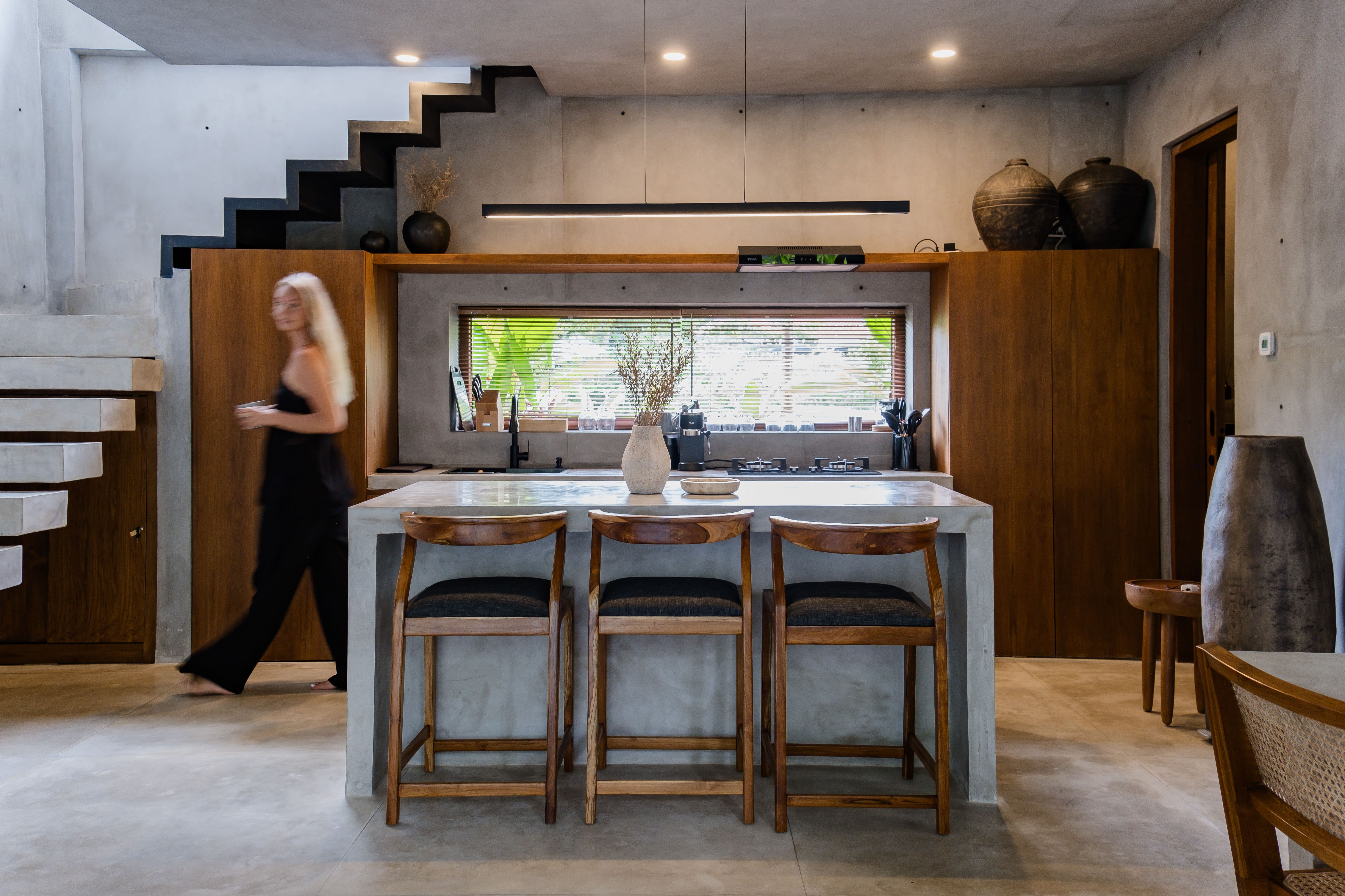 Brutalist meets tropical. Bold concrete lines, natural textures, open volumes — it feels more like staying in a piece of architecture than a holiday rental. The indoor-outdoor flow is seamless, with living spaces opening straight onto the private pool. It's minimal without feeling cold, and quiet without feeling isolated.