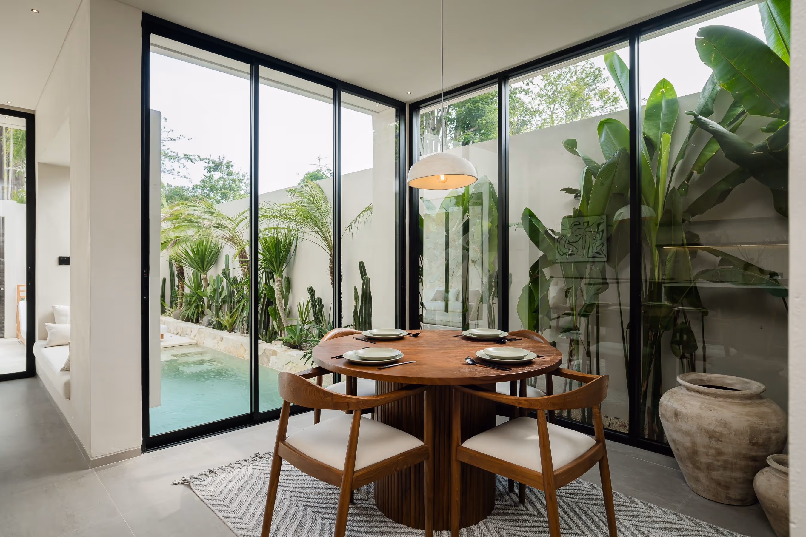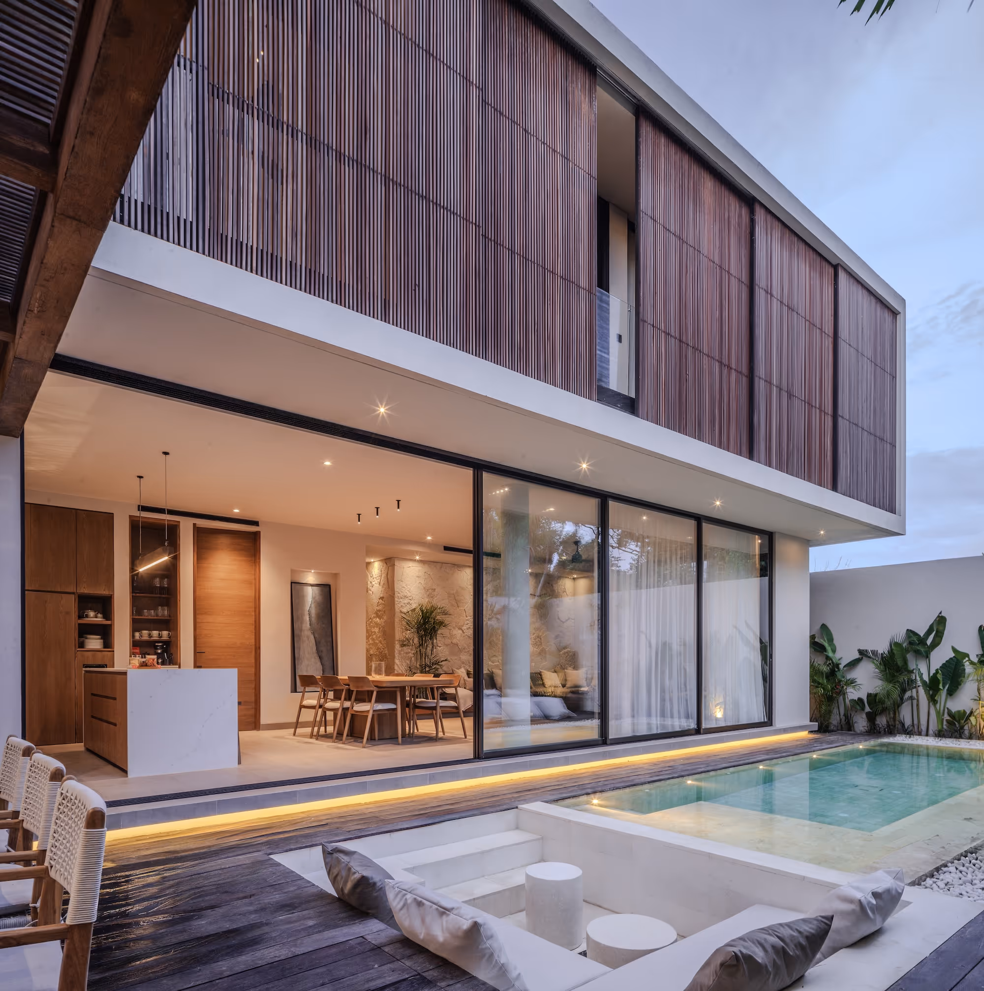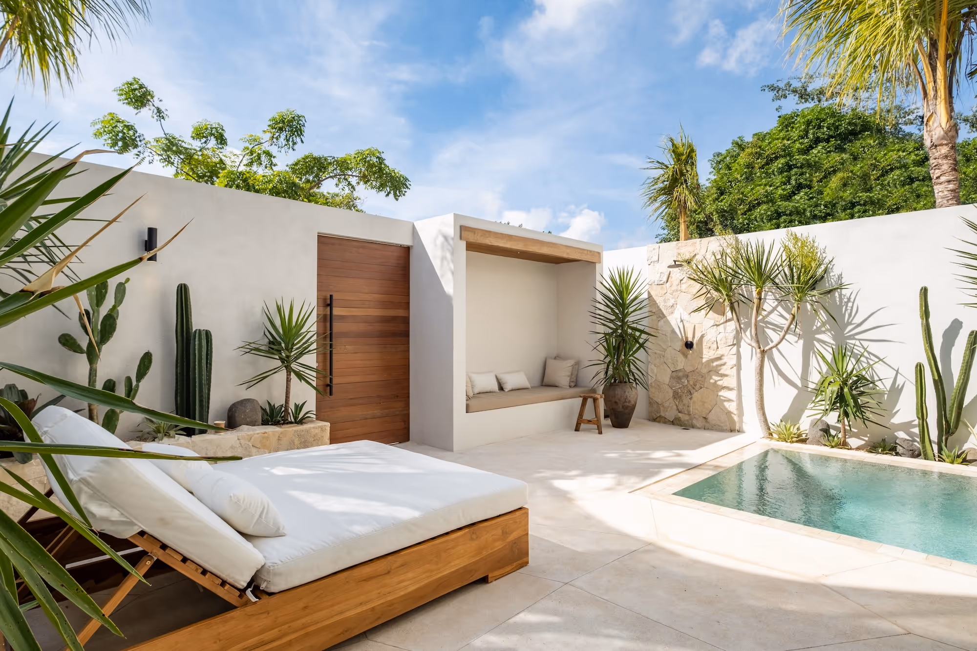 The villas showcase clean lines, natural materials, and thoughtful design touches throughout. Floor-to-ceiling windows invite natural light and tropical breezes, while private pools and sun decks provide the perfect sanctuary for relaxation. Modern kitchens, premium bedding, and high-end amenities ensure every stay is comfortable and convenient.